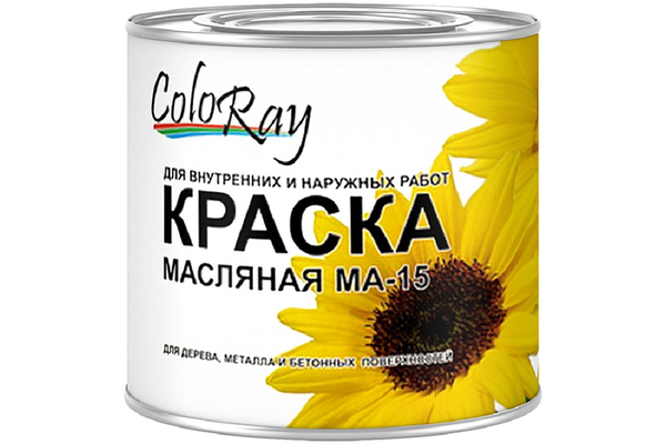 Краска МА-15 применяется для окраски металлических, деревянных и других поверхностей (за исключением окраски полов), подвергающихся атмосферным воздействиям, а также для малярных работ внутри помещений. Краска МА-15 COLORAY изготавливается на основе олифы «Оксоль» ГОСТ 190-78 собственного производства (содержание подсолнечного масла не менее 55%) .