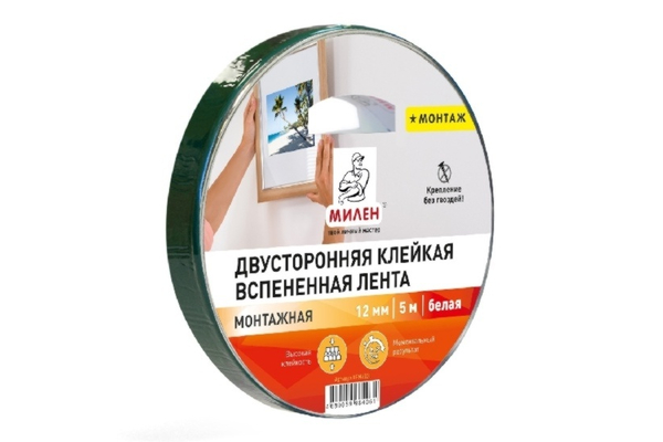 Лента двухсторонняя клейкая 12мм*5м БЕЛЫЙ Профи.
