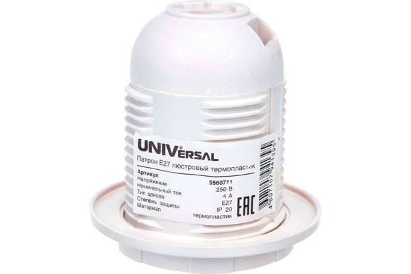 Патрон Е-27 термопластик подвесной белый с кольцом Б/Н TDM (10/50/200)