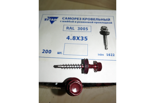 Саморез кровельн.4,8*35 (3005) красн. вино (D) (200шт)