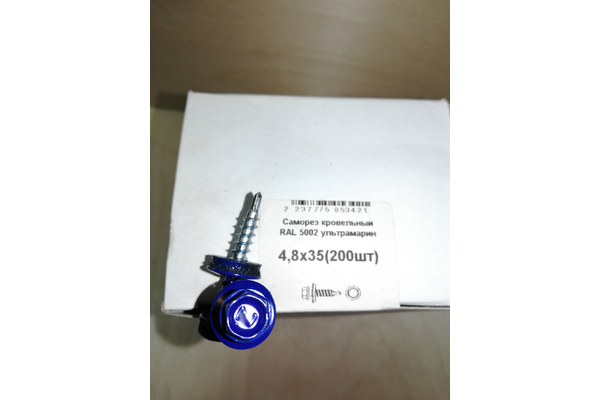 Саморез кровельн.4,8*35 (5002/5005) ультрамарин/ синий (200шт)