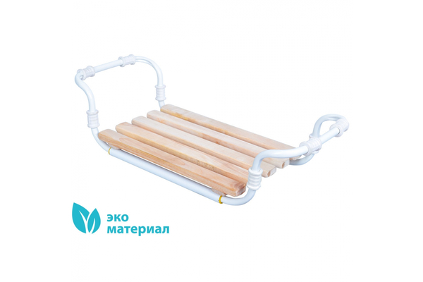 Пятиреечное сиденье из неокрашенного дерева, закрепленное к каркасу.