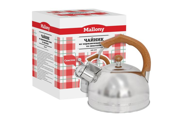 Чайник 3,0л нерж. со свистком, инд, ручка дерево ID-KH926W Барс (1/12)
