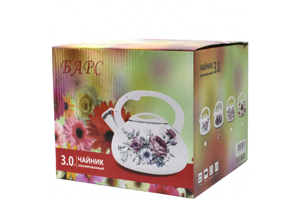 Чайник 3,0л. эмаль Букет со свистком, индукция Барс (6)