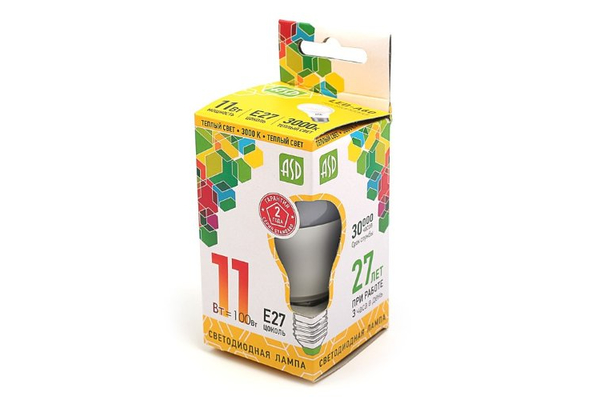 Лампа св/д 11W 4000К ASD ЛОН А60 Е27 110*60 пластик/алюм стандарт (100)