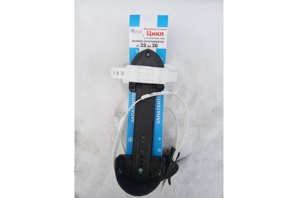 Универсальные лыжные крепления, размер 28-36, Цикл предназначены для фиксации ноги ребенка в обычной обуви к лыжам. Они изготовлены по уникальной технологии, благодаря которой обеспечивается эффект поддержки и закрепления ноги как в лыжном ботинке, что создает защиту от травм во время катания. Конструкция представляет собой регулируемые по длине ремешки, закрепляющиеся с помощью застежек-клипс. Крепления изготовлены из морозоустойчивых материалов.