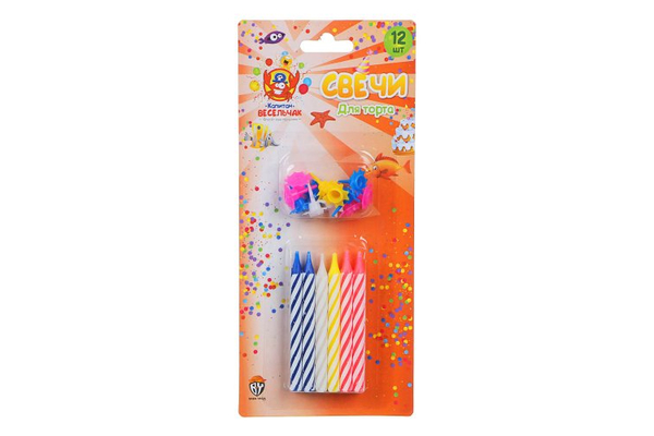 Свечи для торта 12шт 4цв SR-05 Капитан весельчак (24/288)