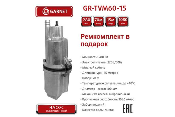 Насос 15м верх/заб, 280Вт Garnet 15м GR-TVM60-15 (6)