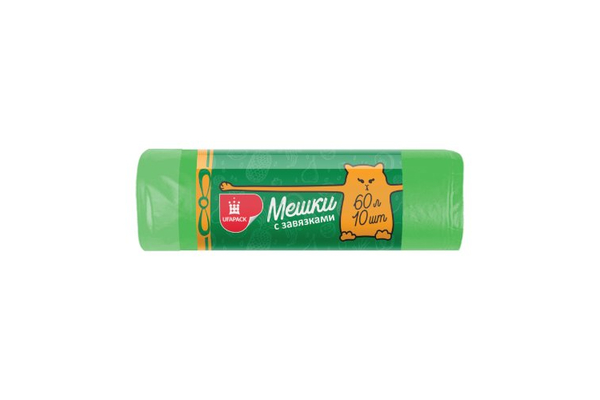 Мешки для мусора 60л "С ЗАВЯЗКАМИ" 10 шт. ПНД салатовые (20)