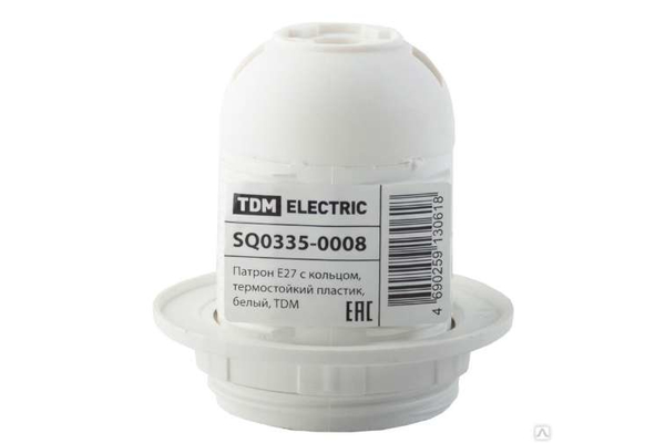 Патрон Е-27 термопластик подвесной с кольцом белый 4А