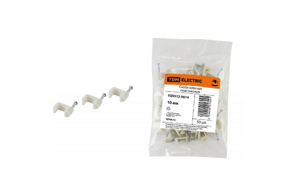 Скоба для эл. кабеля 9 мм плоская пластиковая (уп.50)(цена за уп.) (50)