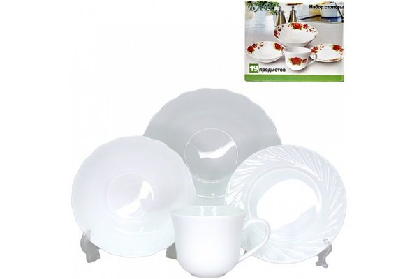 К&Ф Сервиз стол 19пр Барс с кружками 360мл в ассорт. стеклокерамика белый