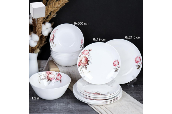 К&Ф Сервиз стол 19пр Чайная роза стеклокер /FLYGP8575672 (20032) (737122)