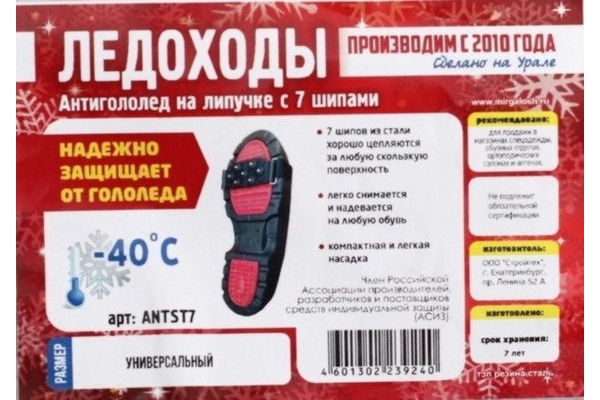Ледоходы Антигололед на липучке с 7 шипами, арт.ANTST7
