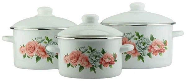 Набор кастрюль "Розы и пионы" белый -2-3192/4 эмаль б/ч (2л,3л, 4л)