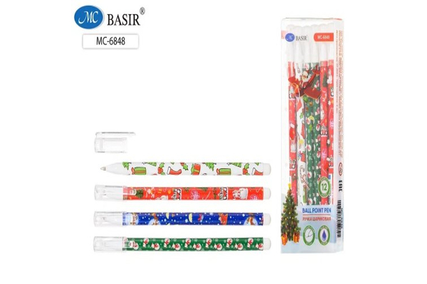 Ручка шар детская синий 0,7мм Новогодние Basir