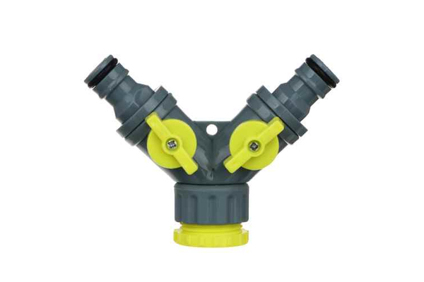 Полив Тройник-Разветвитель 2-х каналь, штуцерный, 3/4'-1/2', регулируемый, пластик INBLOOM (50)