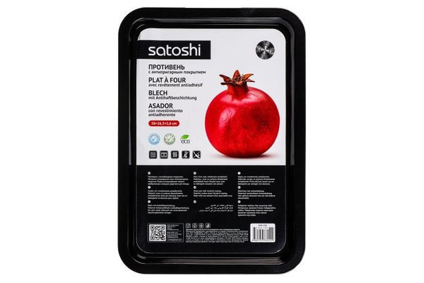 Плоский противень Satoshi «Виссан» 38х26,5х1,6 см из углеродистой стали с антипригарным покрытием подходит для запекания картофеля, грибов, мясных и рыбных стейков, а также печенья, пирожных и других кондитерских изделий. Прочный противень с утолщенными стенками и дном обеспечивает равномерное приготовление продуктов. Не подвержен деформации. Качественное антипригарное покрытие не содержит вредных соединений, исключает прилипание продуктов и не подвержено быстрому износу. Легко моется в посудомоечной машине или вручную без использования абразивных средств. Строгий дизайн в черном цвете будет актуален для любой кухни.