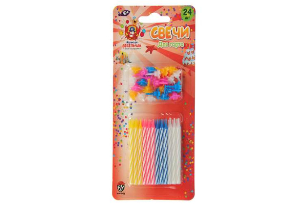 Свечи для торта 24шт 4цв Капитан весельчак/ Волш.стр (24/288)