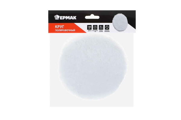Круг полировочный,180мм на липучке, искусственный мех, Ермак