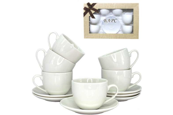 Набор чайный 12пр прямоуг под/упак БЕЛЫЙ ШЕЛК гладкий ТС69-12G БАРС 1/8