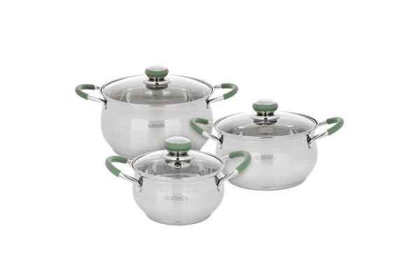 Набор кастрюль 6пр нерж (1,9/3,6/6л) со стекл. крышкой SATOSHI Марли