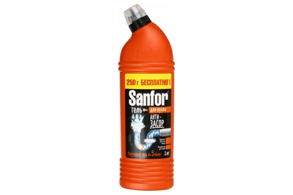 ЧС для труб Санфор 750+250 грГель (Прочистка труб на кухне)