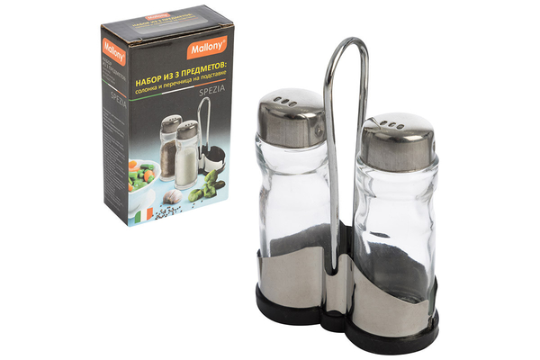 Набор для специй стекло 3предм. с подставкой (соль/перец) Mallony SPEZIA(009367)