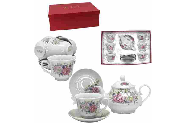 Набор чайный 13 пр. прям. красная под/уп Цветочная фантазия FA-2351 (4)