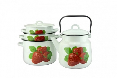 Набор кастрюль "Кухонный"-4-308/4 (Кастрюли 2л 3л 4.5л+Чайник 3,5л) эмаль
