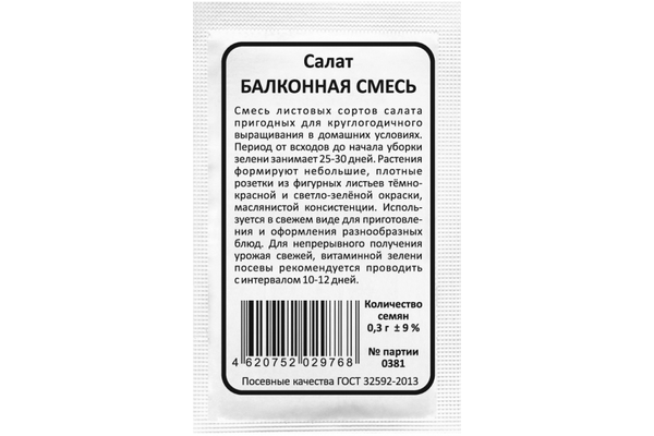 Семена Салат Балконная смесь (Марс) Белая упак
